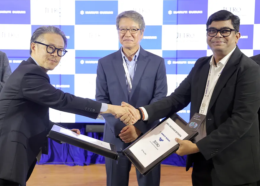 Maruti Suzuki India Limited (“Maruti Suzuki”) signed a Memorandum of Understanding (“MoU”) with the Japan External Trade Organization (“JETRO”) to promote innovation, facilitate startup business funding, and enable opportunities for Business incubators supporting startups from India and Japan.